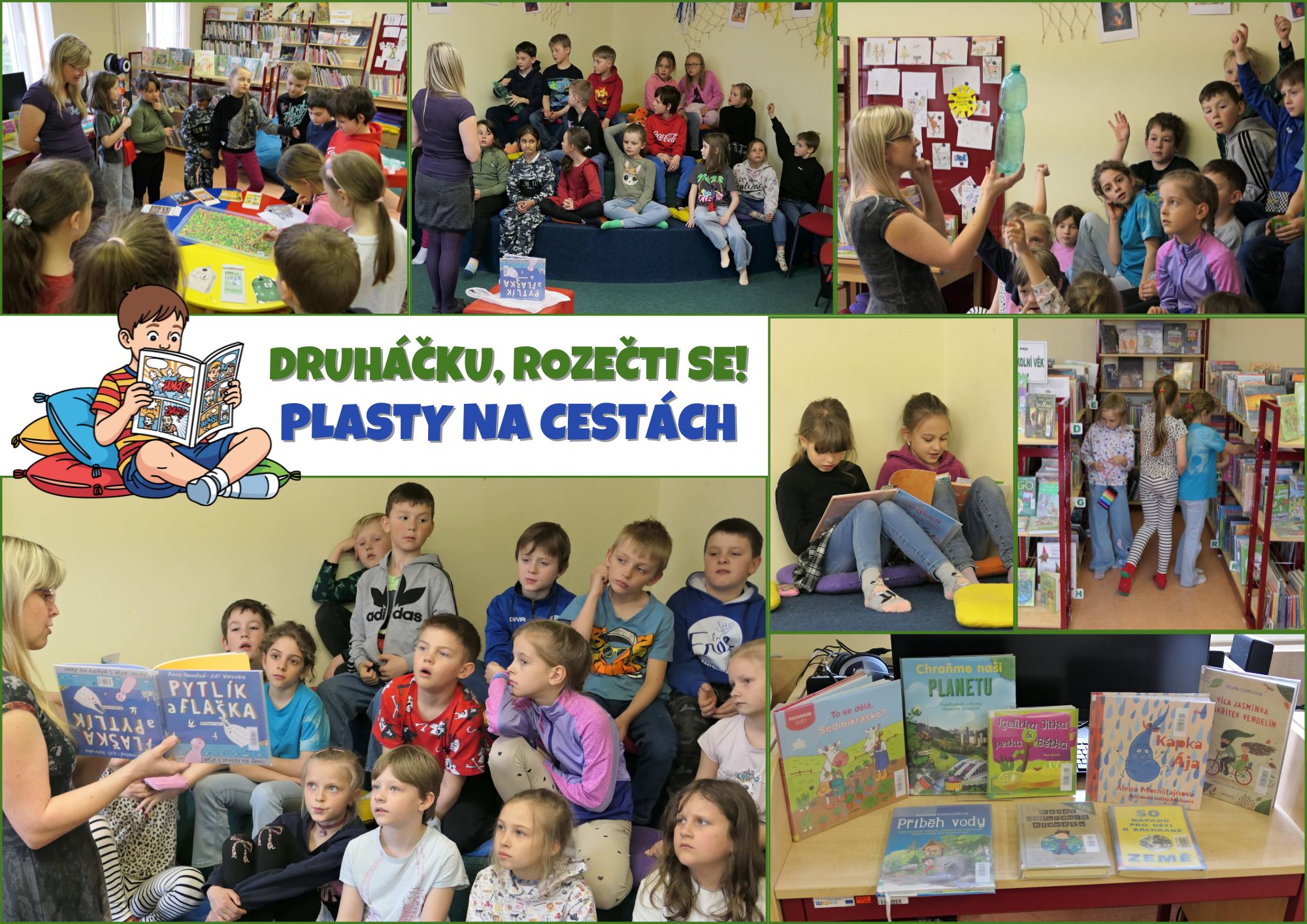 Druháčku, rozečti se: Plasty na cestách – pro ZŠ Hronov 2.A a 2.B (15. a 16. dubna 2026) 17 Dub,2026 knihovna Jelikož se v dubnu slaví Den Země, setkání se druháčky jsme tentokrát zaměřili na jednu ekologickou pohádku FLAŠKA A PYTLÍK. Četli jsme, diskutovali, hráli si… Děti měly spoustu zajímavých postřehů a závěrečné třídění odpadů zvládly skvěle.